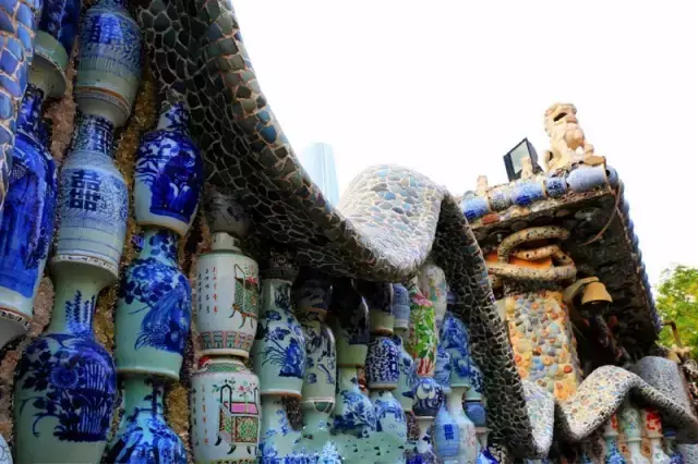他在这座年久失修、闲置十余年的法式建筑基础上,历经十年心血精心创造,使用历代珍贵石造像、石刻、石狮子,历代古瓷瓶、古瓷盘、古瓷片,天然水晶玛瑙装饰而成。