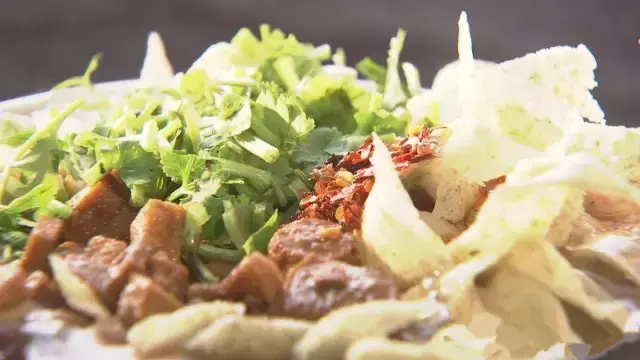 创于清朝光绪年间。是把绿豆和小米水磨成浆,摊成薄厚均匀的煎饼,用刀切成柳叶状,浇上由十几种调料制成的卤计,再洒上辣椒油、芝麻酱、酱豆腐汁、香菜叶,轻轻搅拌一下就可以大快朵颐啦。