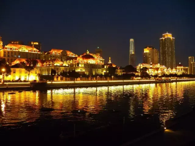 但它最让眷恋的却是夜幕降下之后,海河流水闪烁的波光灯影的美,流动不息的美。
