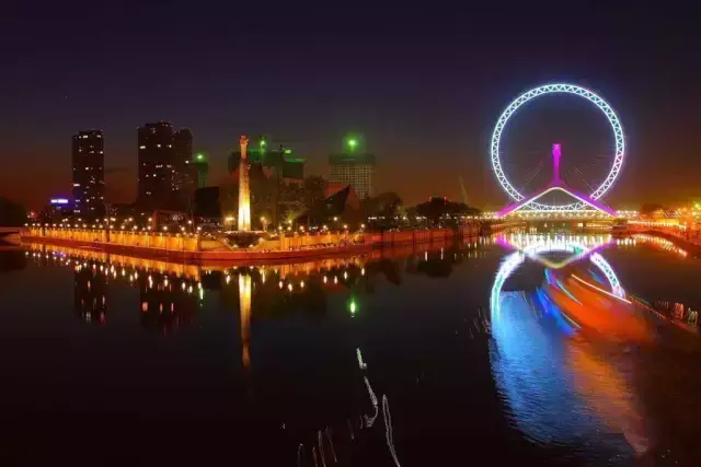 天津永乐桥摩天轮,是世界上唯一建在桥上的摩天轮。据说,摩天轮的每一个盒子里都装满了爱,当你坐在洋溢着幸福的盒子里的时候,那份慢慢升腾的爱也随之而来。
