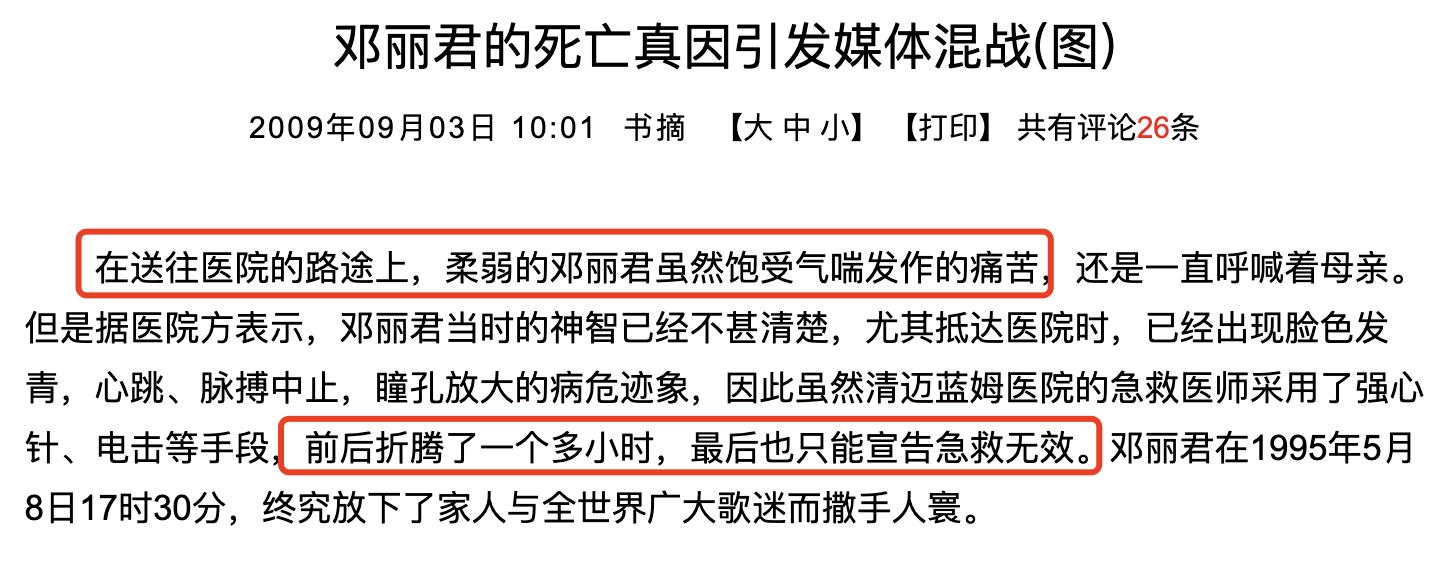1995年5月8日,央视播出了一条讣闻:“知名歌手邓丽君,在泰国因气喘急促去世,享年42岁 。”
