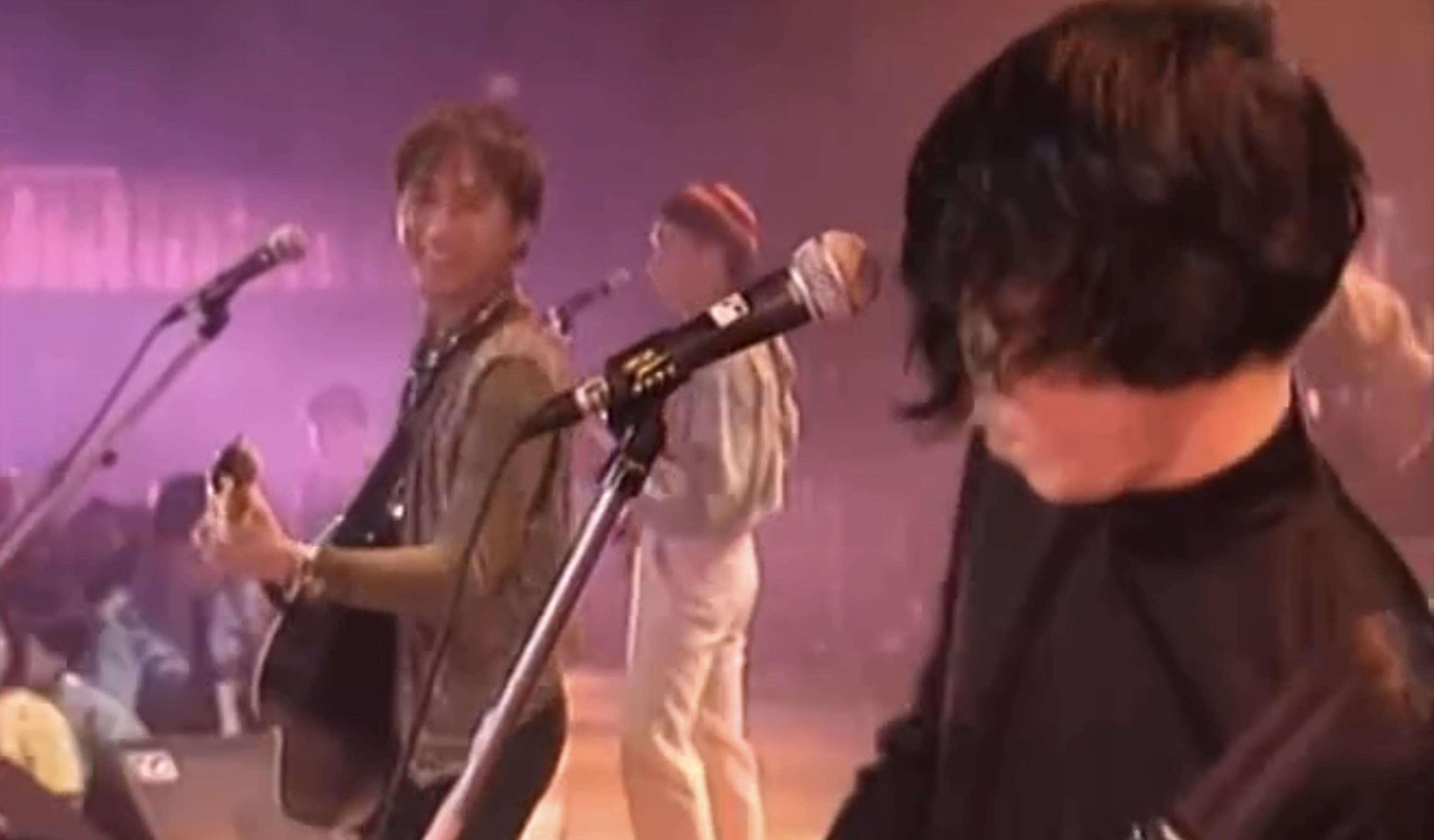 在演唱《不再犹豫》合唱部分时,前句刚唱完,黄贯中就马上接着“OH...”了一声,很明显快了一拍,黄家驹听到黄贯中唱错了,便扭过头来看着贯中,对着他笑,给他安慰。