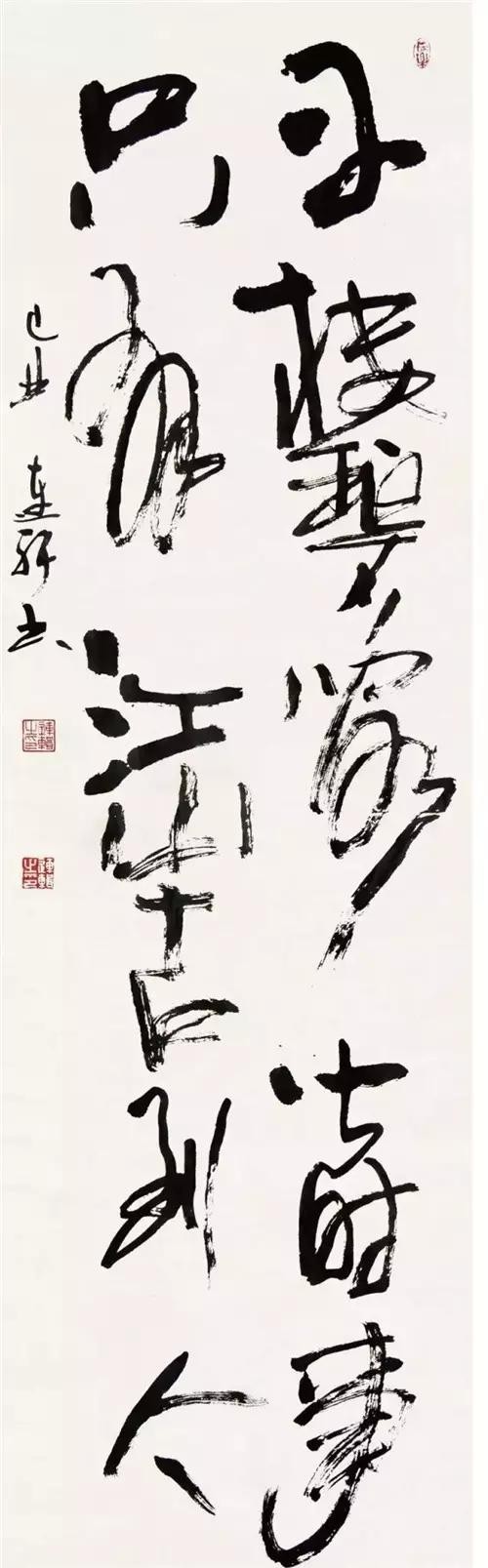 沈鹏:连辑先生作品面貌多样。部分草书间隔较大而能贯气,开合有度,所谓计白当黑,是为难得。公务余暇得此成就,至可宝也。