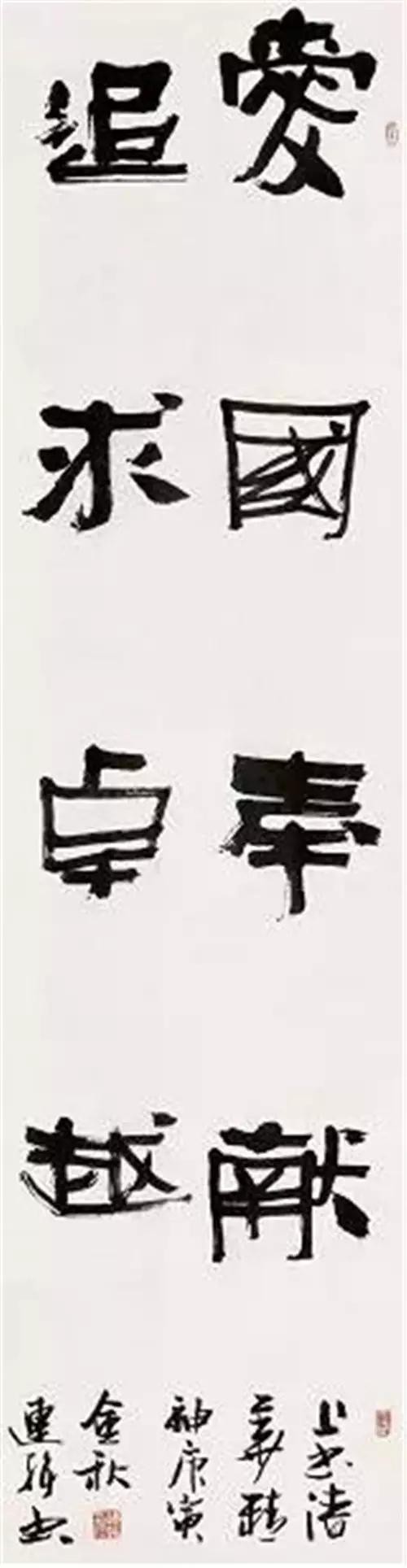 张海:连辑先生擅长诸体,尤长于隶,其隶取法,高古雄浑朴厚而又雅拙,灵动自然率意,具有鲜明的时代精神,展现了作者良好的审美素养。