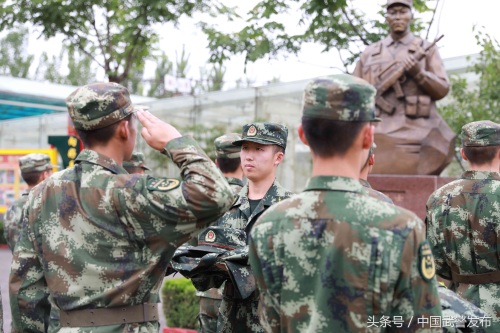 在“时代楷模”张楠雕像前,举行了简短的仪式,整个过程庄严肃穆,排长将新服装郑重地交到每一名战士手中。
