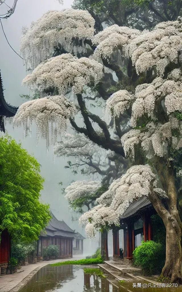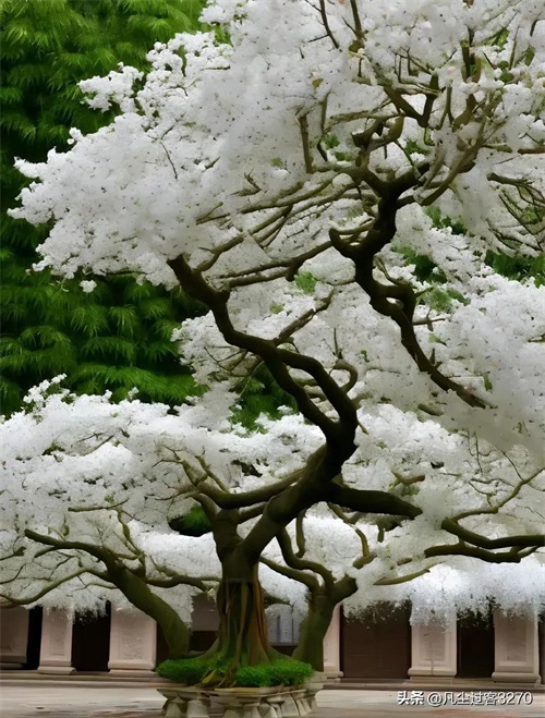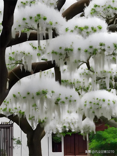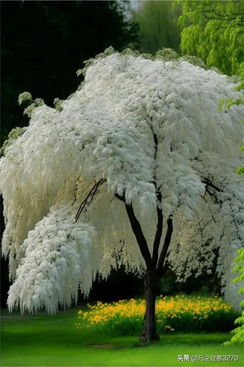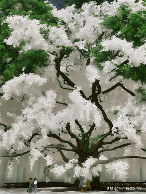 流苏树,木樨科流苏树属(Chionanthus)。别名萝卜丝花、四月雪(江苏)。中国甘肃、陕西、山西、河北以及南至云南、广东、福建、台湾等省生海拔3000米以下,日本、朝鲜也有分布。株高20米,耐低温,春末夏初开花,花期约10天。花和嫩叶晒干可代茶饮,具消暑止渴之功效。