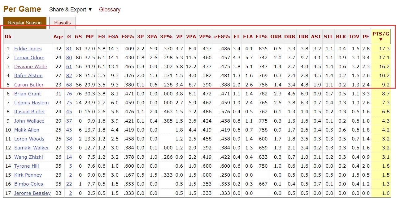 新秀赛季的韦德场均获得16.2分,队内第三,出手权也在埃迪-琼斯和拉马尔-奥多姆之后,但是效率却是三人当中最高的,而前一年场均刷了15分的卡隆巴特勒下滑到9分,所以不难理解为什么韦德能成为建队核心了。这是凭借实力打出来的,也能看出来韦德并不需要队友作出过多牺牲就能取得胜利,和状元詹姆斯交易里基-戴维斯后依然无法进入季后赛形成了鲜明对比。