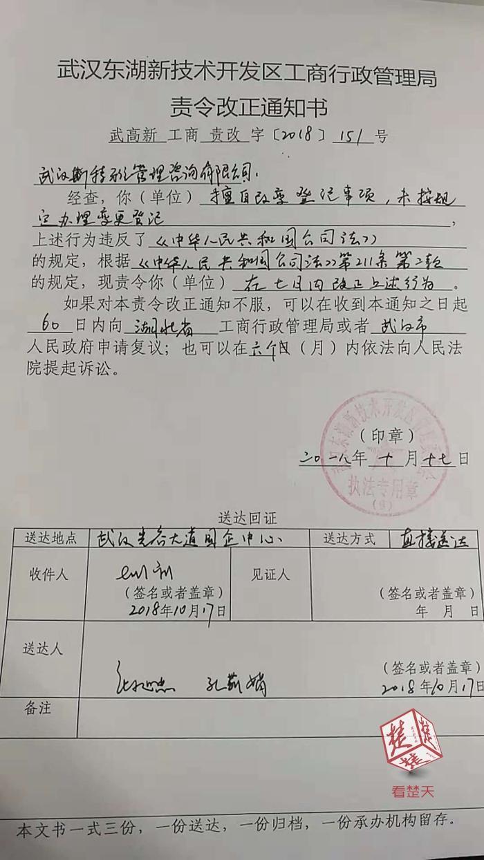 16日,记者陪同求职者来到光谷市场监督管理所。该所相关负责人介绍,因涉及劳动就业问题,他们联合人社劳动部门在工商所约谈了企业法定代表人。因擅自改变登记事项超范围经营、未按规定办理变更登记,光谷市场监督管理所向斯特雅公司下达了责令整改通知书,要求在7日内改正。否则将按法定程序进行查处,他们还向该公司注册地洪山区工商质监局反馈了此事。