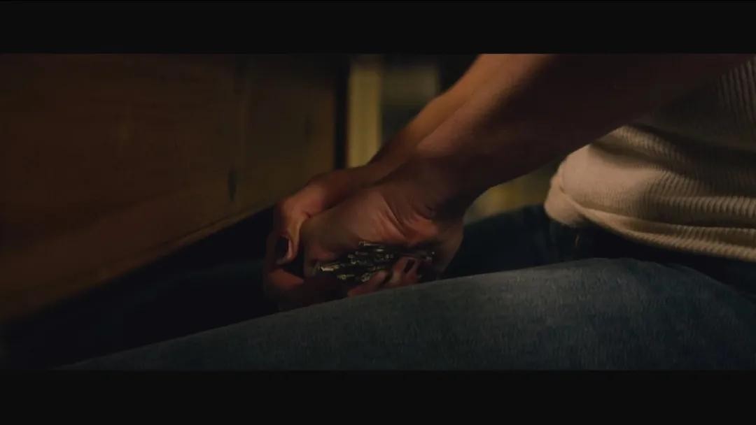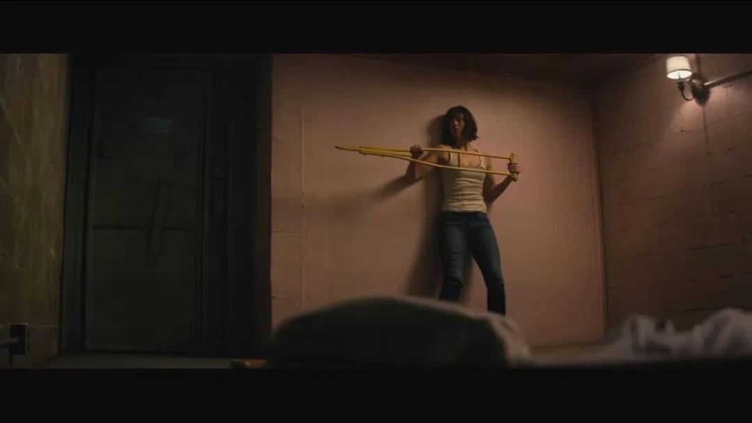 在地下室安心的日子没持续多久,米歇尔就在地堡中发现了一个秘密:在通向地面的玻璃窗上,被人反向刻着“help”,字迹上面还带着血迹。
