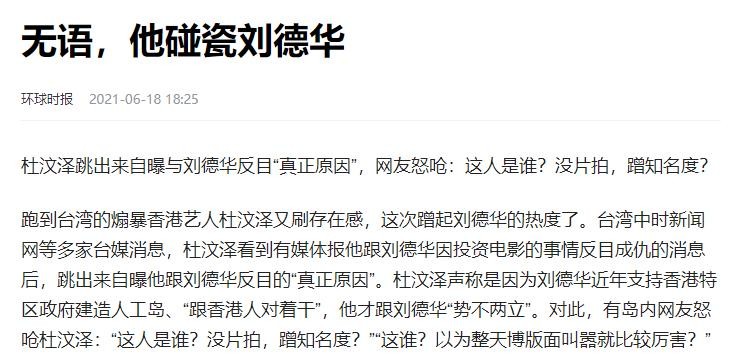 2022年2月,杜汶泽高调宣布自己获得了“台湾身份证”,并宣称自己是“台湾人”,他或许以为,这样就可以融入台湾社会,获得新的身份认同。