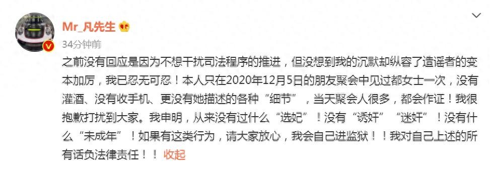 有反转?吴亦凡4个“没有”回应都美竹连续10天的爆料