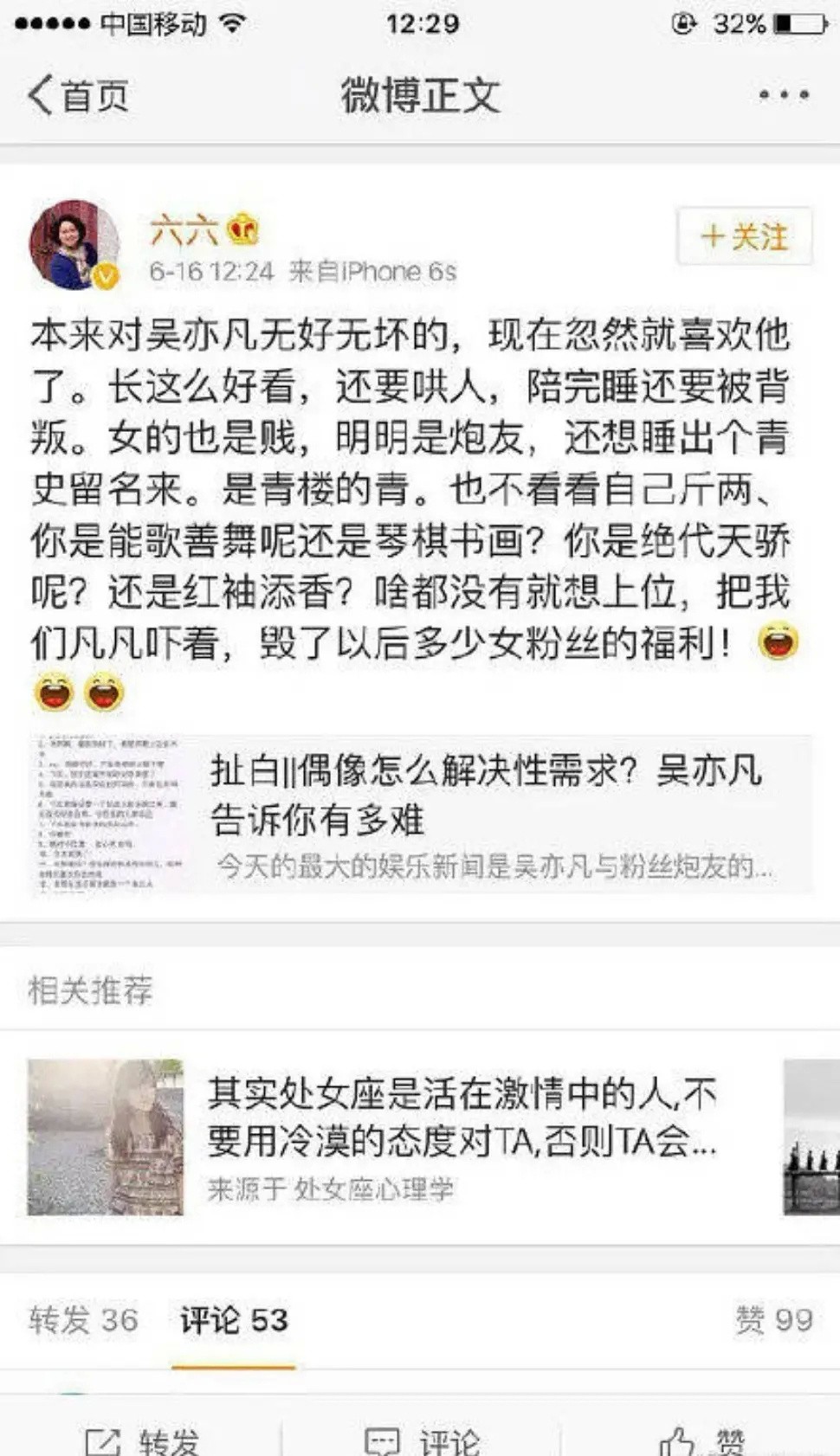 2016年,“小G娜”曝光与吴亦凡“床照”后,一群大V站出来替吴亦凡说话。