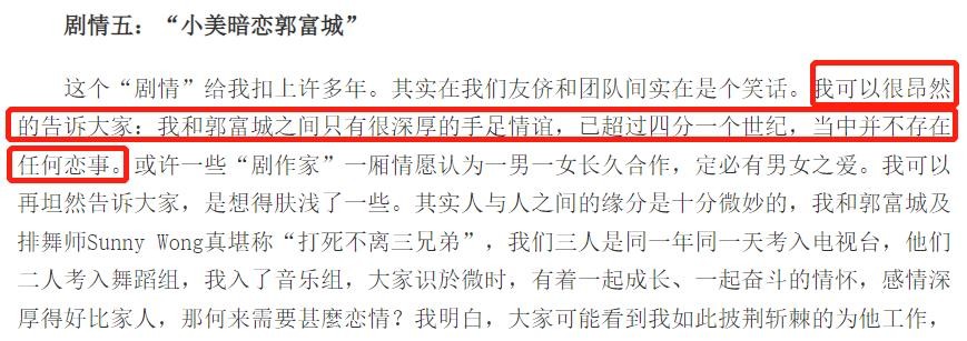 那段时间里,两人是并肩作战的战友,几乎每次获奖,郭富城都会上台表示:“我要感谢我的小美。”