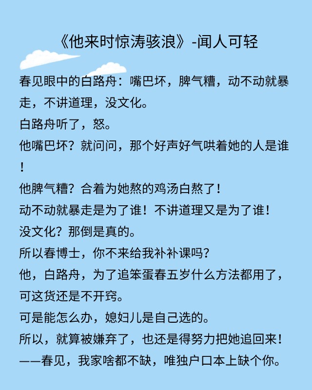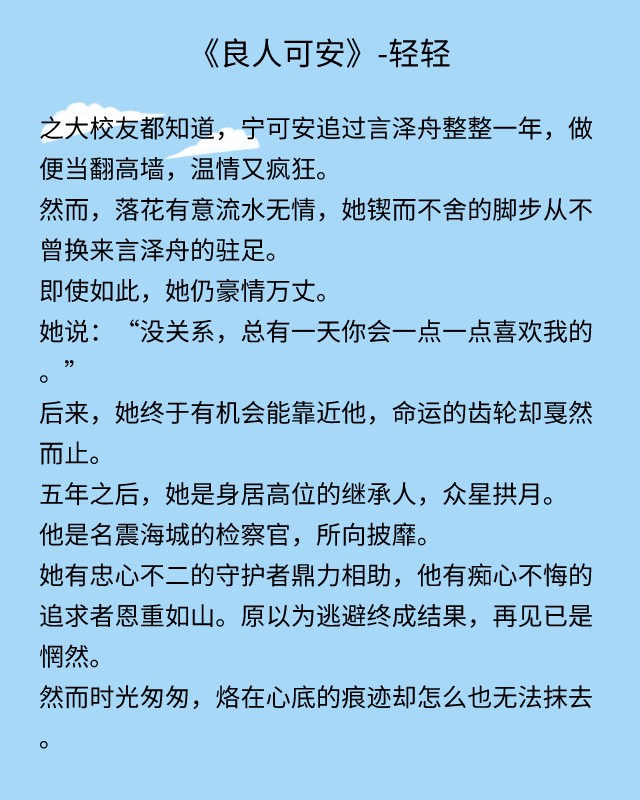 点评:这个故事里没有那么多的狗血,没有绿茶,也没有白莲。女主独立坚强,男主直率霸道,彼此善良而真诚,这就是幸运与幸福啊。