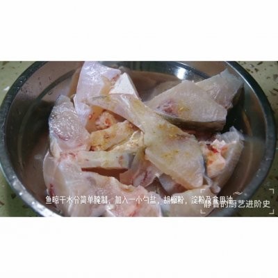 3、腌制鱼肉,加入盐,胡椒粉,淀粉及油(详情见视频)