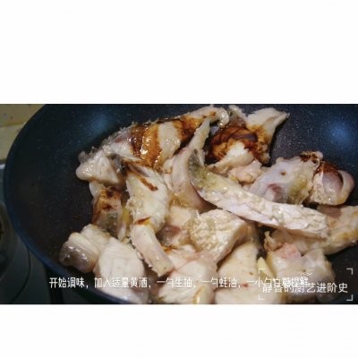 6、煎香后调味,加入黄酒,生抽,蚝油,白糖(详情看视频),再加入点水焖