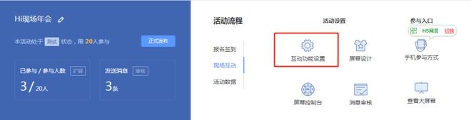 进入互动功能设置,选择“摇一摇”进行相关设置