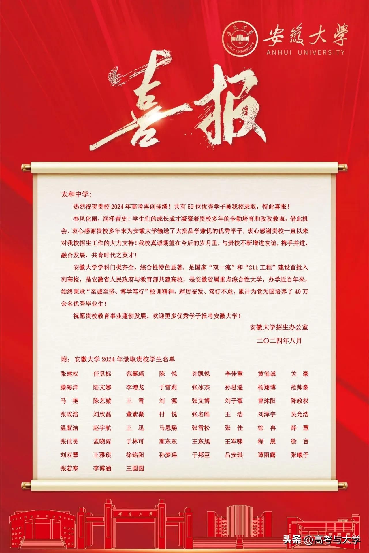 安徽省太和县一中和太和中学2024年高考清北7人,985院校169人