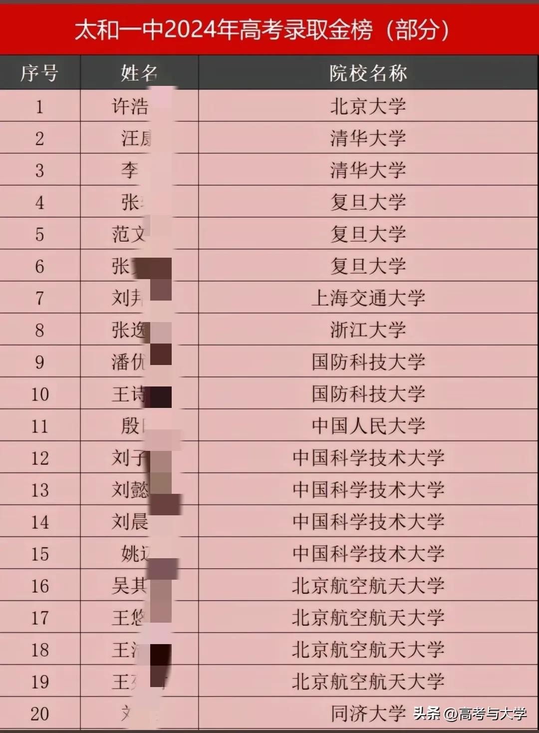 太和中学2024年高考录取985院校77人,其中清北4人,C9院校22人,211院校214人。