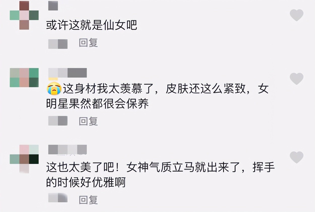 网友们在看到这段视频后,有人评论:“这也太美了吧!女神气质立马就出来了,挥手的时候好优雅啊。”还有人表示:“这身材我太羡慕了,皮肤还这么紧致,女明星果然都很会保养。”也有人称赞:“或许这就是仙女吧。”