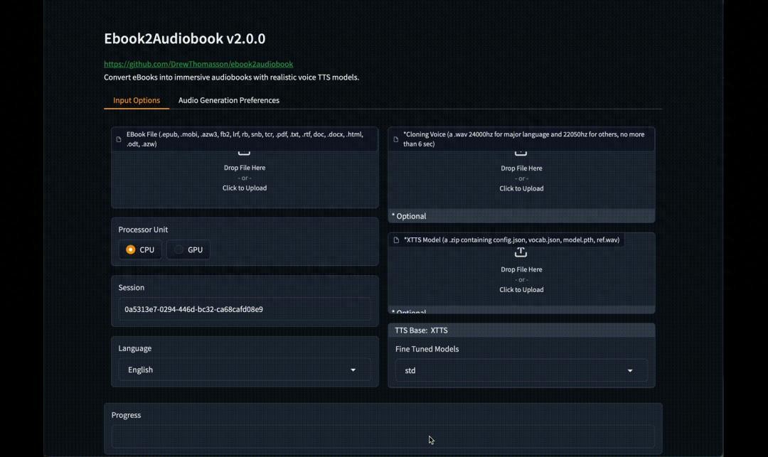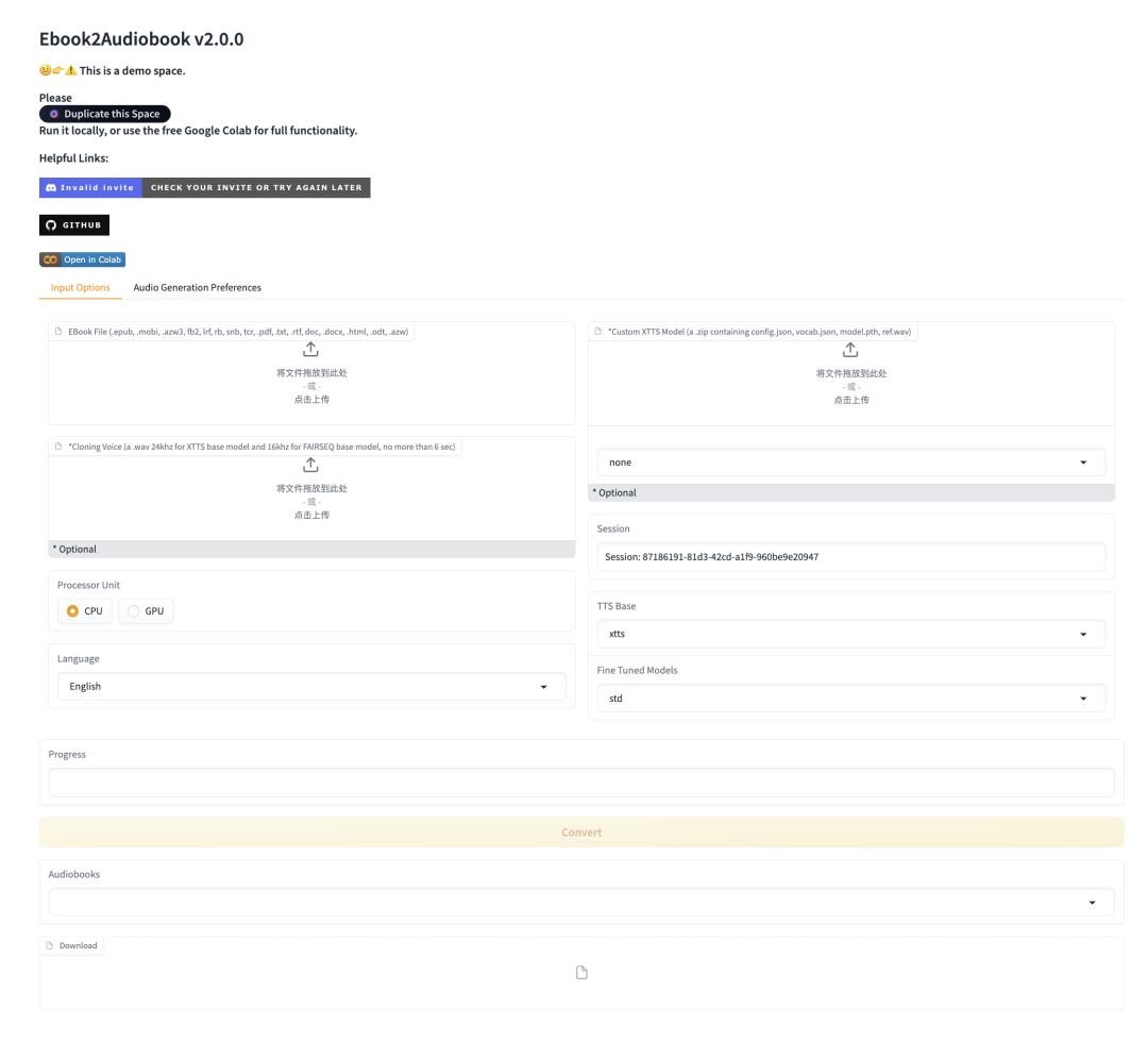 9.1K+ Star!ebook2audiobook:一个将电子书转换为有声书的工具