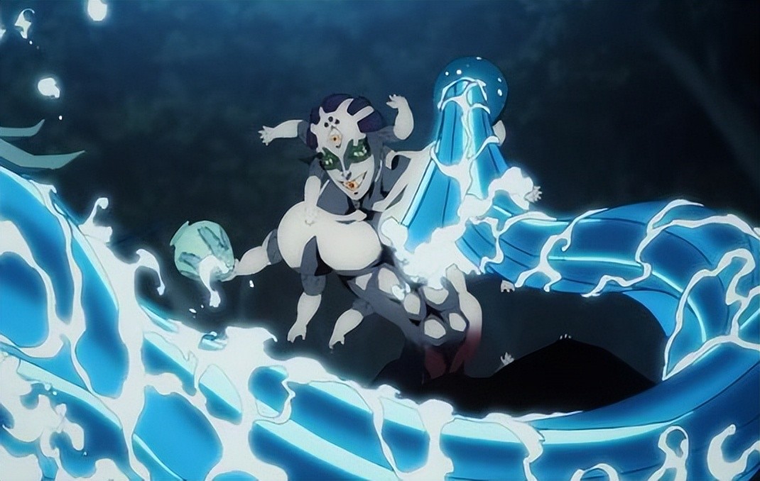 平时藏身于罐中,口眼错位,头两侧有婴儿般的小手。为找寻“青色彼岸花”,受无惨之命与半天狗一同袭击锻刀人的村子,被无一郎斩杀。