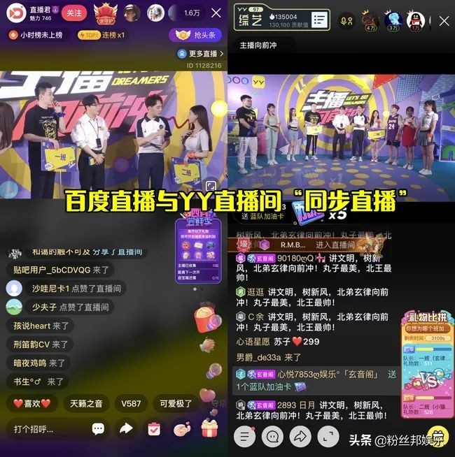 值得一提的是,《主播向前冲》本次是在百度和YY直播间同步直播。