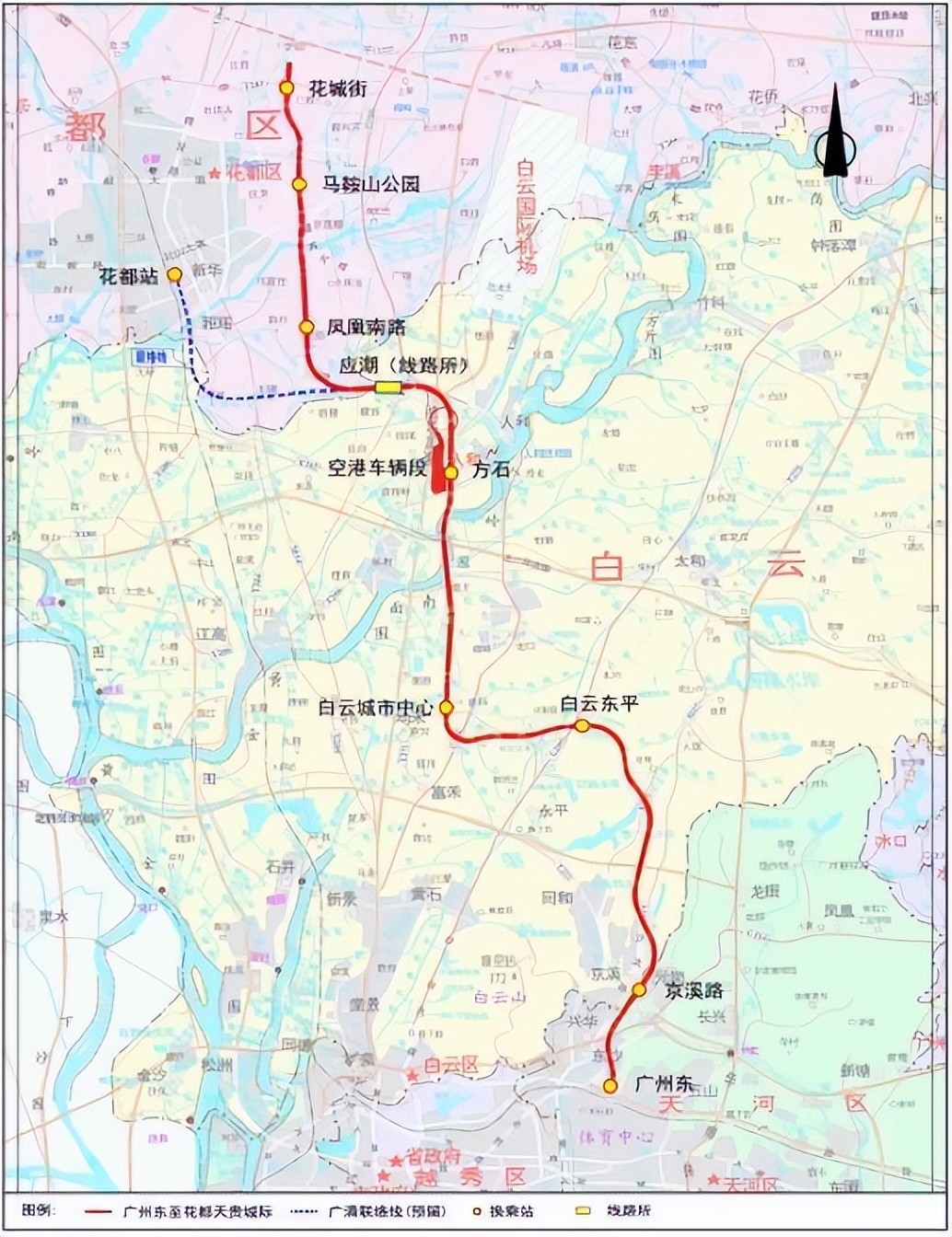 按照计划,广州地铁18号线将向北延伸,设立有7座车站,包括:京溪路站、白云东平站、白云城市中心站、方石站、凤凰南路站、马鞍山公园站、花城街站。按照近期的工程进度,北延段的线路土建工程都在开工中,进展顺利。