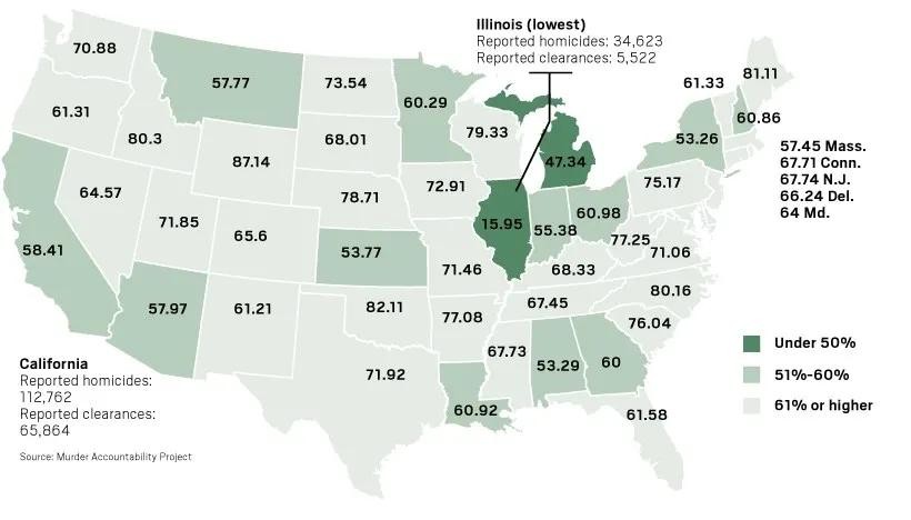 25、在美国,有大约40%的刑事案件逐渐变成了无头案件,上图是16年时美国未破解的案件数量。