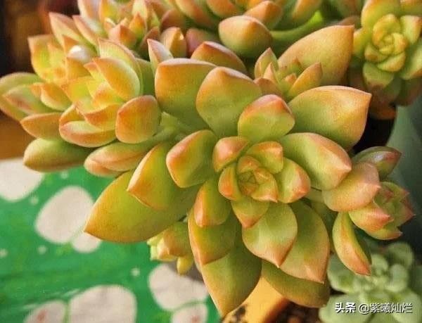 当你看着它一点点地成长,在阳光的滋润下,叶色越来越清澈,就像那诱人的果冻,让人忍不住想咬上一口,犹如黄色的丽人一般。友友们,多肉黄丽是不是特别有意思呢?