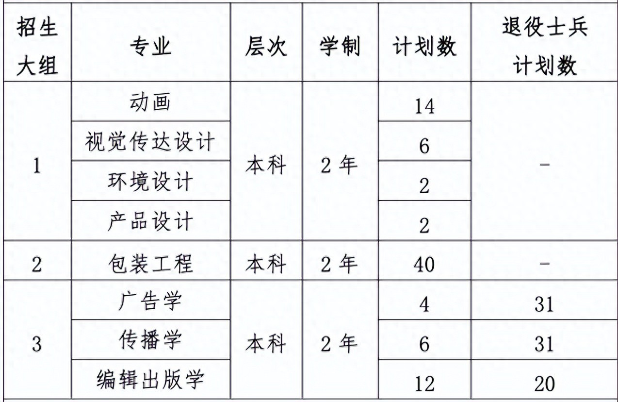 2024年我校“专升本”招生总计划为168人,其中退役士兵计划82人。招生专业及分专业计划如下: