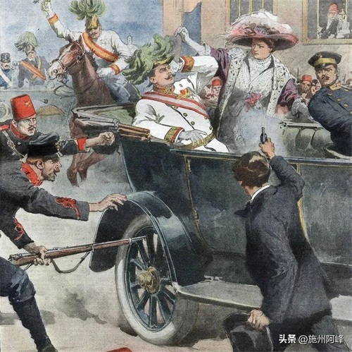 1914年6月28日,奥匈帝国的皇储弗朗茨·斐迪南大公与妻子索菲亚在萨拉热窝视察时,遭到了塞尔维亚民族主义者的枪杀。