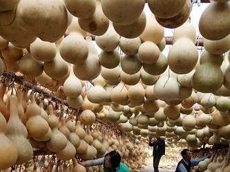 刮净葫芦的表皮后,用细绳拴紧葫芦柄,把葫芦挂在半阴半阳的高处,进行晾晒。正常情况下30天左右就能彻底干透。晾晒时,需要注意以下几点:
