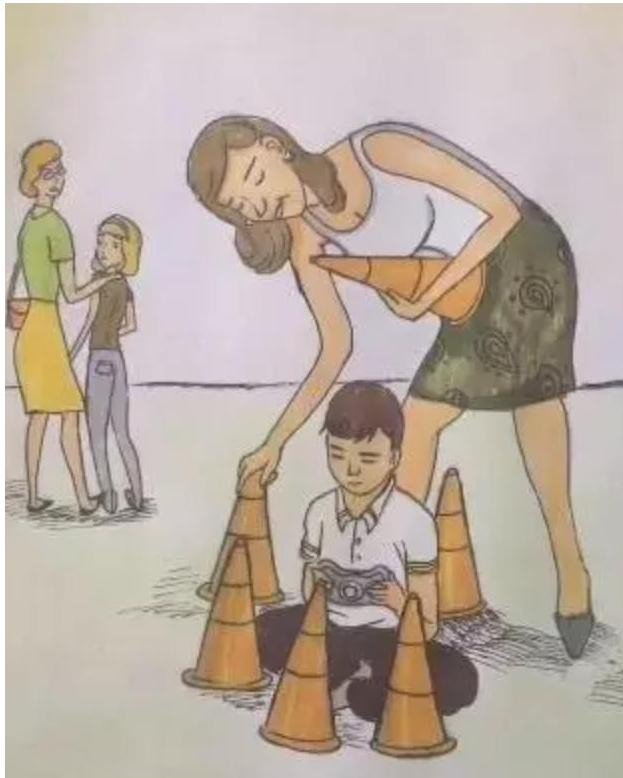 漫画中的第一幕展示了一个家庭场景,母亲正培养孩子对社交媒体的依赖。儿童教育的重要性被忽视,孩子们沉迷于虚拟世界中的游戏和社交平台,导致他们与现实世界的交流能力和生活技能受到影响。实际上,研究表明,社交媒体过度使用与儿童心理健康问题和学业下滑有直接关联。