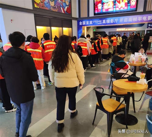 甚至连厂里的保安师傅都跟着一起去看电影了,还带上了叉子,直接扮演哪吒里面的结界兽,还别说,师傅扮演的真挺像那么回事的!
