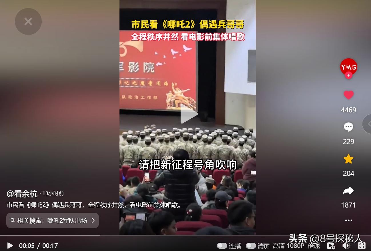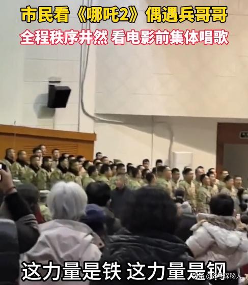 抖音官方媒体 看余杭2025年2月16日发布《市民看《哪吒2》偶遇兵哥哥,全程秩序井然,看电影前集体唱歌。》