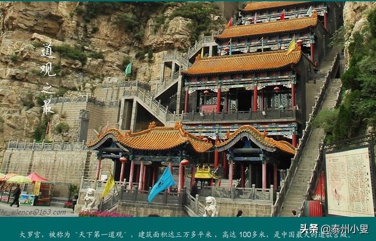 当地人俗称"中岩"。"三清上,曰大罗"。道家认为天有三十六重,三十六重之上为大罗天,因此这座宫殿为大罗宫,意为最高的仙宫。大罗宫依山而建,层楼杰阁,画栋雕梁,金碧辉煌。整个建筑群面积为三万多平方米,共十三层组成,总高110米,游客称赞"可以与布达拉宫相媲美",可谓天下道家第一宫观。