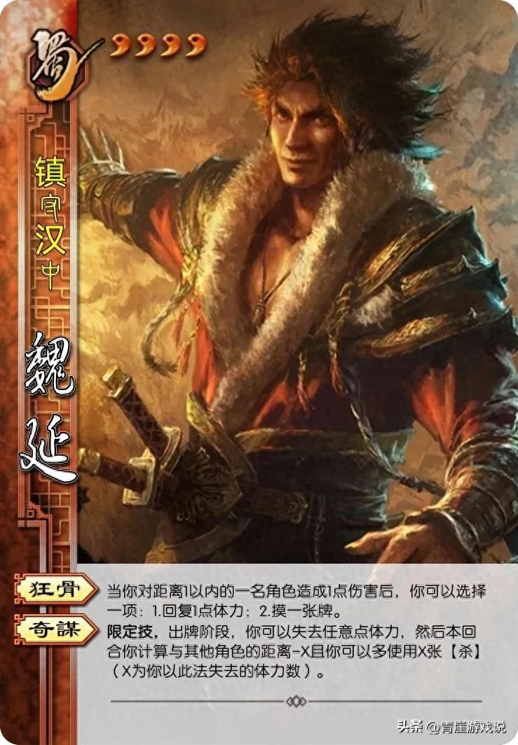 界魏延【狂骨】有造成伤害后的保底收益,一个技能就已经远超普通魏延了。如果伤害牌多的时候,依靠【奇谋】多次造成伤害,多次触发狂骨的吸血、摸牌,一次性爆发换来殊死一搏,这就是界魏延的玩法。