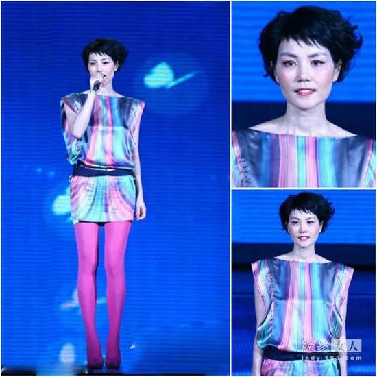 第二次春晚演出。那是2010年春晚。王菲已嫁给李亚鹏,大部分在内地生活,过着相夫教女的人间烟火似的日子。这次她演唱的是李建的《传奇》。王菲变得脸庞圆润,妆容也挺美丽,发型短发略爆炸型。穿着蓝紫条纹印花的连衣短裙,紫色打底裤袜,造型美丽但并不太特别惊艳,有一种轻熟大妈的感觉。唱歌也很好听,但没有超越初次春晚演出。这次她的翻唱直接推红了李健,一位有个性和特点的优秀歌手。这次春晚,王菲造型打8.5,演唱8.5。