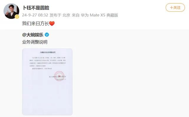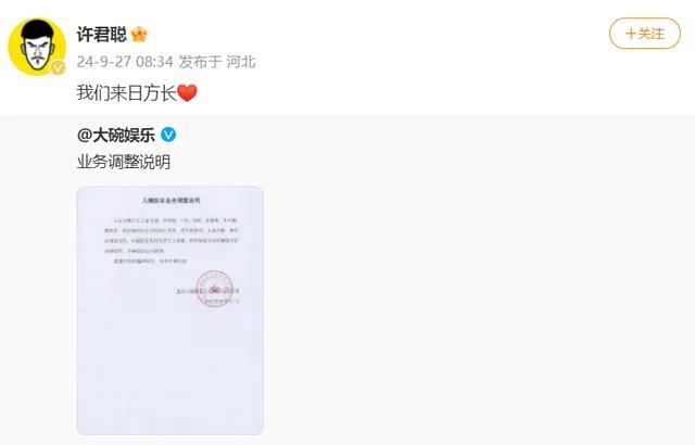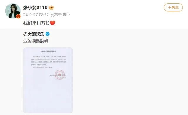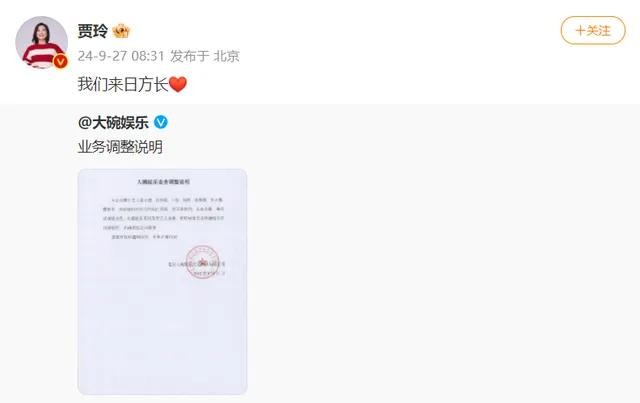 近日,大碗娱乐公布了公司业务调整的消息,令人惊讶的是,知名演员贾玲正式卸任公司职务。此外,旗下艺人如张小斐等也表示合约到期不再续约。这一系列变动引发了广泛关注,贾玲、张小斐等人在社交平台上纷纷发文表示:“我们来日方长”,似乎在暗示未来仍有合作的可能。让我们深入了解这场娱乐圈的动荡,看看背后的故事。