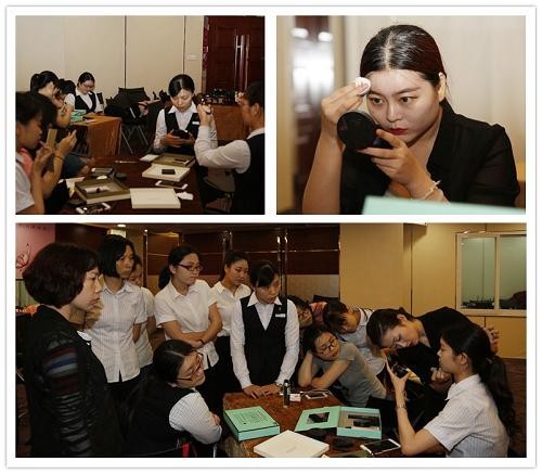 在化妆技巧培训当中,CHARM ZENUS瓷妆的专业彩妆师一边对女员工的化妆步骤、化妆技巧、注意事项等进行细致讲解,一边亲身示范并为员工进行指导。通过现场演示、现场模拟、员工互动等方式,受到了女员工们的一致好评。女员工们表示精致的妆容不仅为个人的形象加分,而且让自己信心倍增,对于增强工作积极性具有良好的帮助。