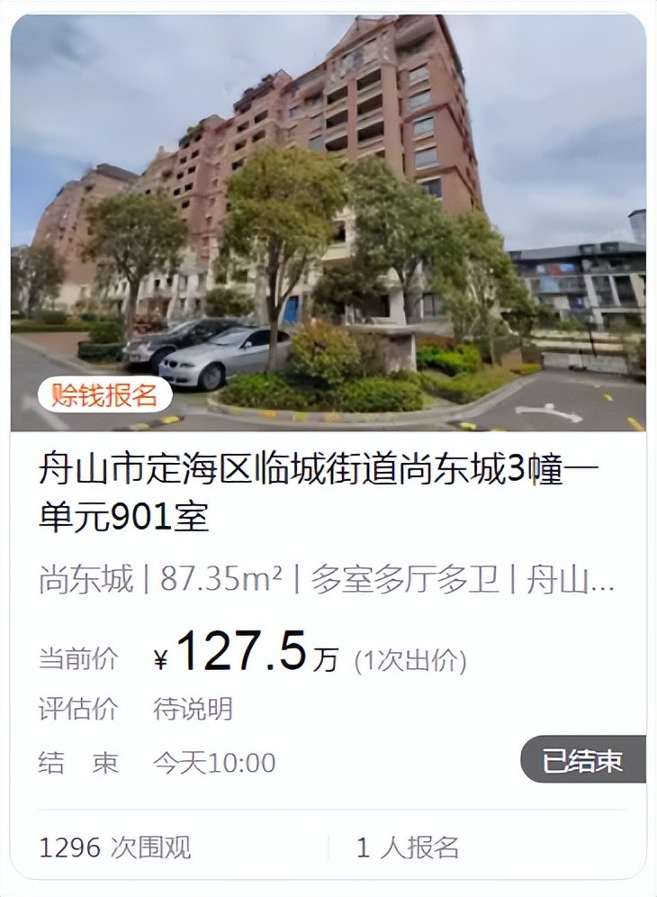 最近,舟山新城尚东城二套原国资持有的房产,顺利成交。一套11楼带车位的84平方米房源,成交价为136.5万,扣除车位价格,相当于单价约1.5万元/平方米。