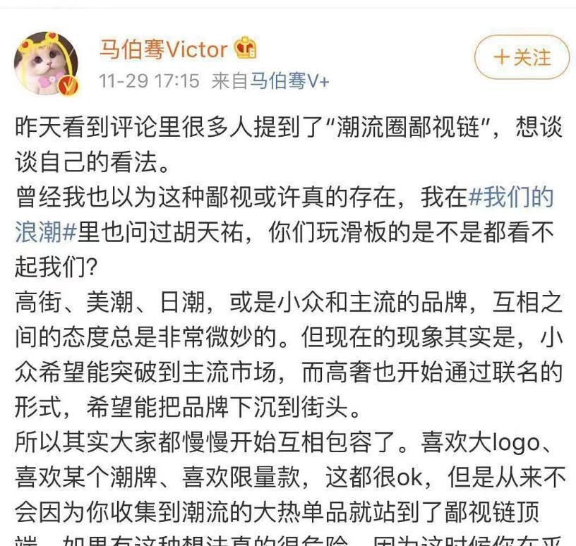 也曾站在粉丝的角度告诉他们,不要被潮牌绑架,自己的钱包最重要。