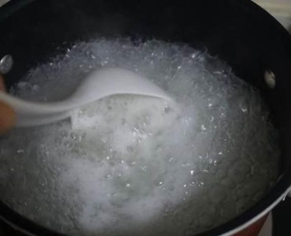 第4步、洗米煮粥,滴入少许香油口感更加,大火煮开后转小火煮30分钟。