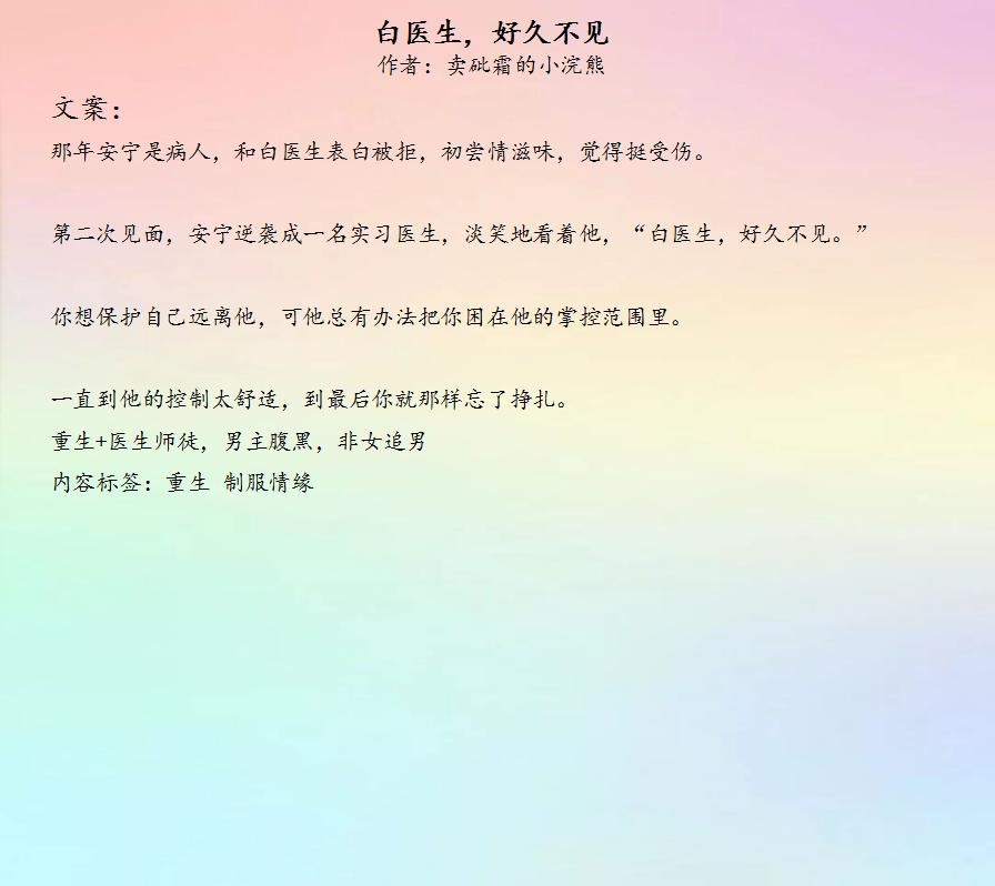 4、《白医生,好久不见》 作者:卖砒霜的小浣熊