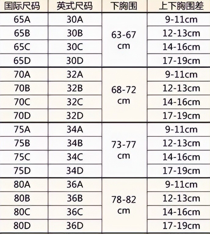 所以在我们的日常生活当中,罩杯也被分为几个等级A、B、C、D等一系列大小,但是这些等级中间的差值为2.5厘米。