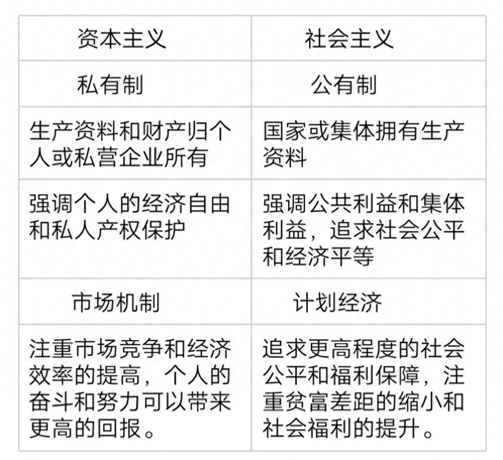 首先,资本主义强调市场经济,以私有制为基础。在资本主义社会中,生产资料和财产归个人或私营企业所有,他们通过市场竞争实现利润最大化。而社会主义则注重公有制,国家或集体拥有生产资料,通过计划经济或混合经济模式实现资源配置。