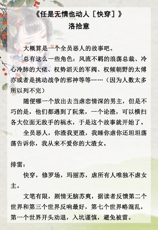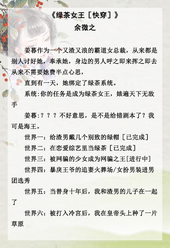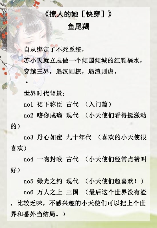 《媚爱如蜜[快穿]》《撩人的她[快穿]》《绿茶女王[快穿]》《她只爱撩人美色[快穿]》《任是无情也动人[快穿]》