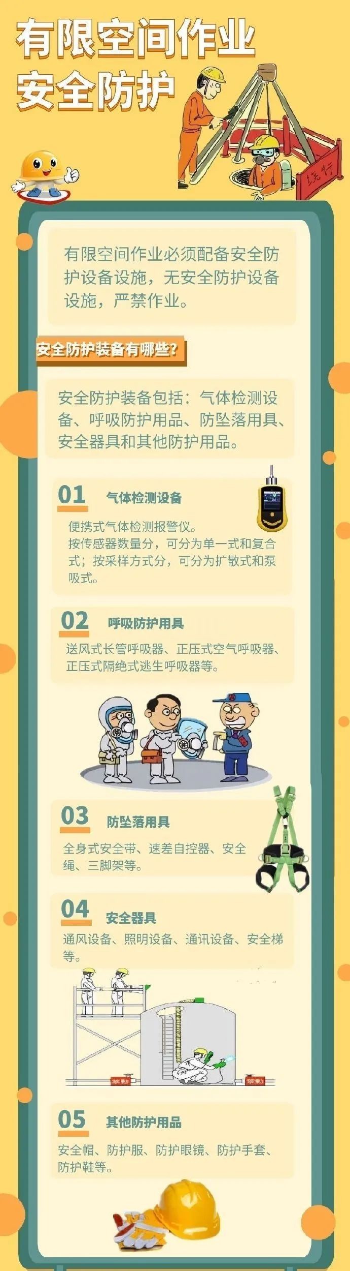 有限空间作业必须配备安全防护设备设施,无安全防护设备设施的,严禁作业。那么,安全防护装备有哪些呢?一图了解↓↓