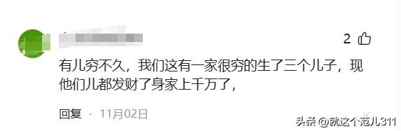 有儿穷不久,我们这有一家很穷的生了三个儿子,现他们儿都发财了身家上千万了。